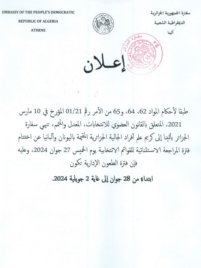 Important notice regarding the closing of the extraordinary review period of electoral rolls and opening of administrative appeals period